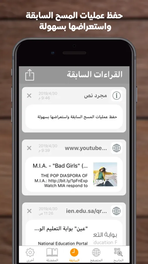 - استعراض الرموز والكودات التي تمت قراءتها سابقًا.