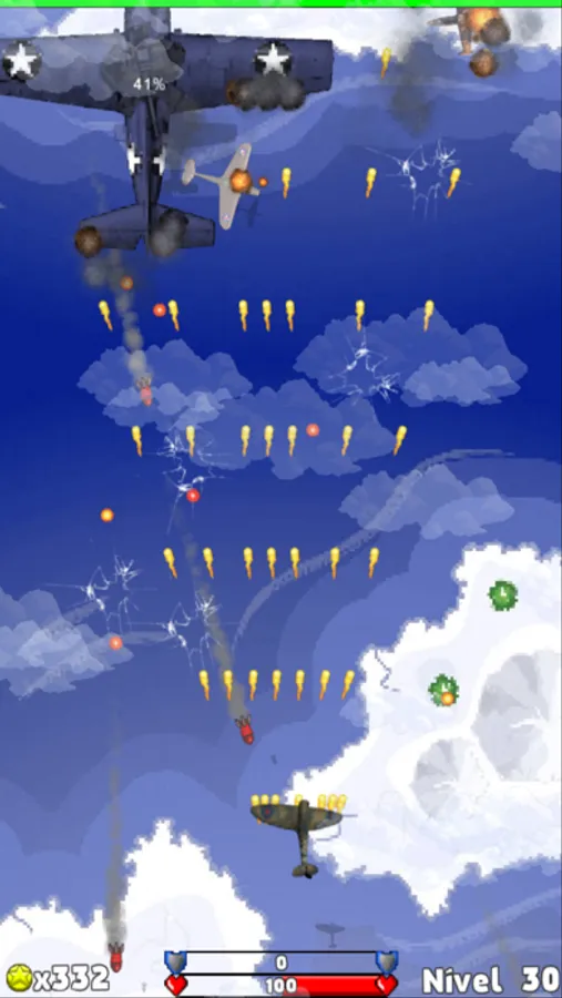 The enemy planes are as varied, with a wide variety of sizes, designs, training and flight patterns. Normally, for each enemy aircraft shot down we will be rewarded with coins or powerups.Los larger aircraft need several shots to be destroyed.