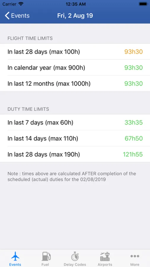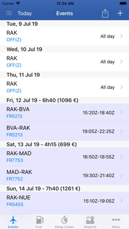 It provides a very easy way to scan your airline roster. You can see all the information about your duties, hours, salary etc… with 5 different views: day by day, week by week, month by month, year by year or with FTL. You can also get the current weather and NOTAM for any day selected in your roster, and export your flights to your calendar or to LogTen Pro. And if you want to know what you’re doing next with just one swipe, you can use the great widget included in the app which displays information about your next duty in the notification center.