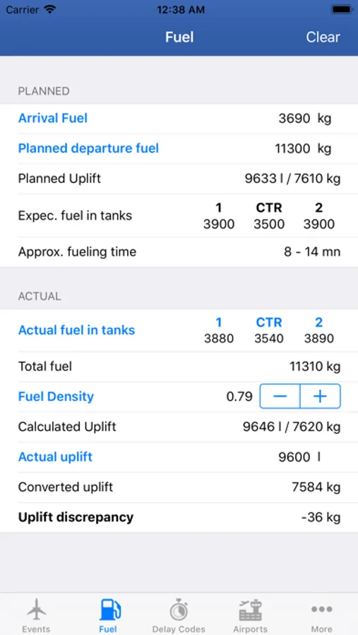 It also contains a tool to assist you during refueling operations (expected fueling time, expected quantity in each tank, x-check actual liters delivered against expected liters).