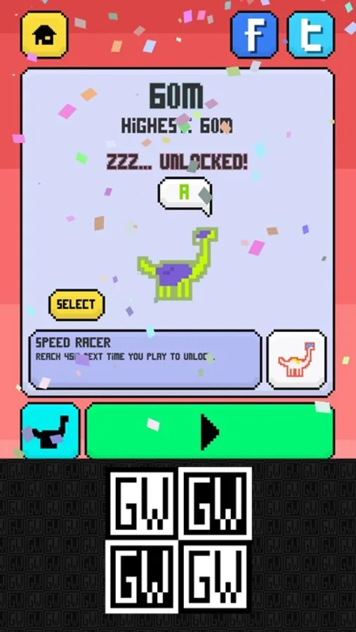 Each time you play you have a chance to unlock a new Brontosaurus to play with! Try and climb as high as you can!