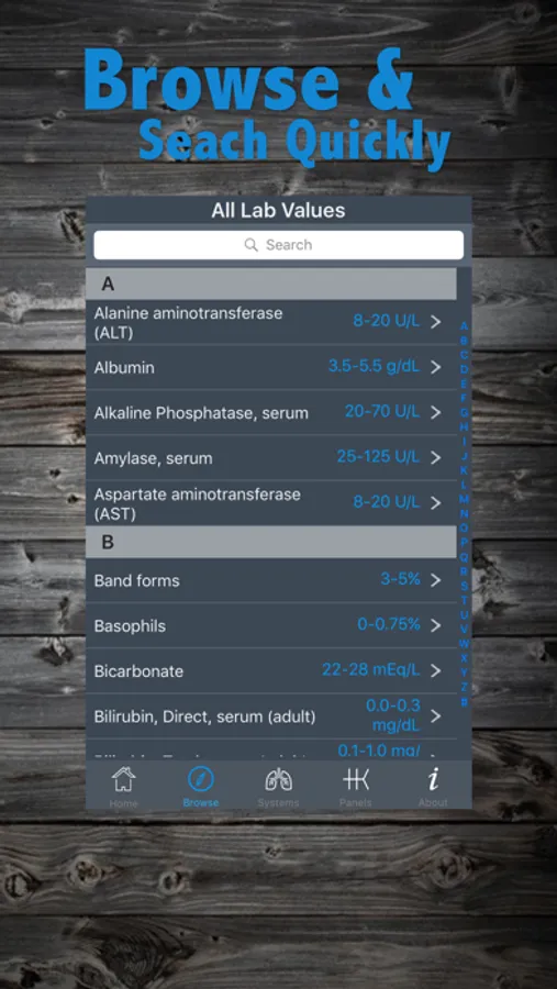 You can sort by lab value, body system or commonly ordered lab panel. We've even included the diagrams for quick reference!