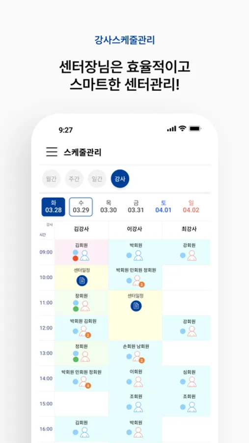 센터 소속의 모든 강사들의 일정을 한눈에 확인/관리!