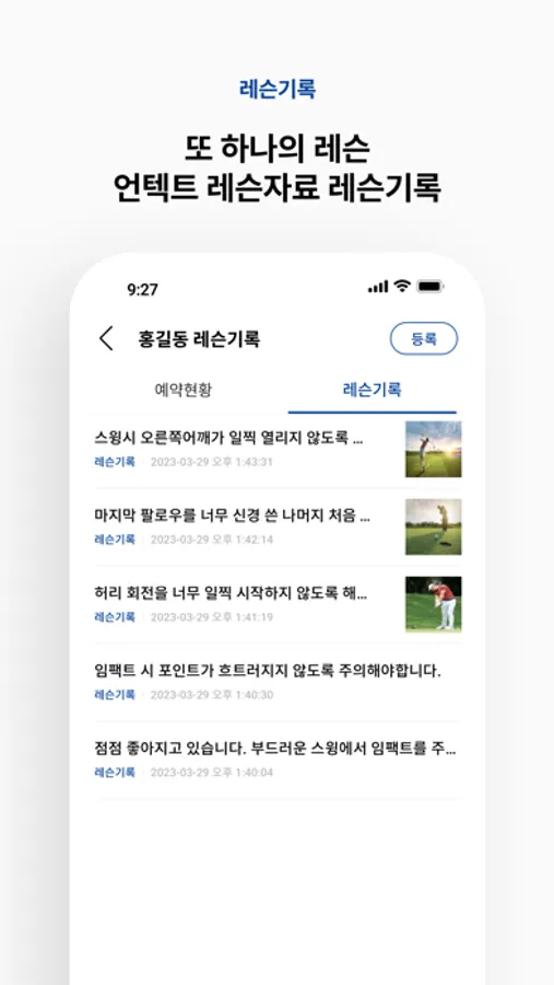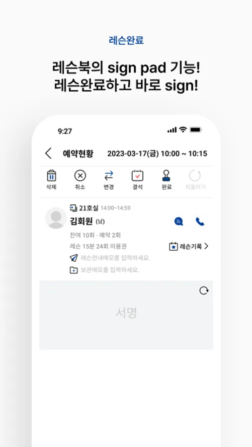 ‘레슨북’은 회원이 직접 예약하고 취소할 수 있습니다.