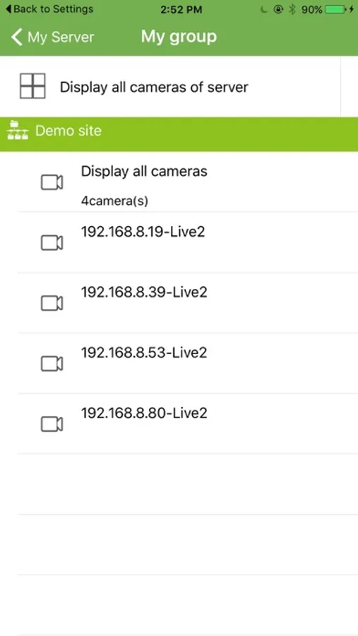 l When login to Mobile Viewer, user will be able to separate monitoring any different camera of groups or direct appearing all cameras in one group.
