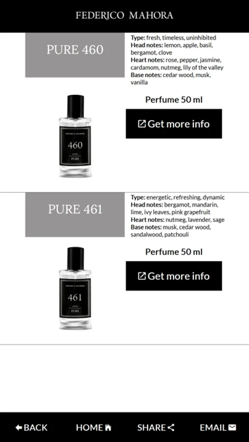 - the application suggests which fragrances fit you best