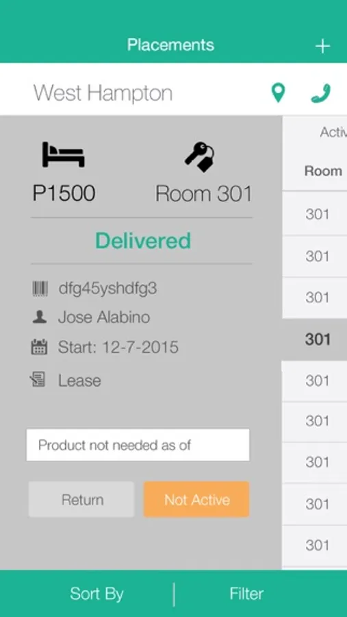 Application for managing mattress placement in facilities including billing, price lists and a management dashboard