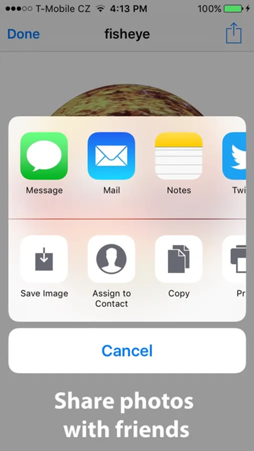 Capture ultra wide angle circular images, then save the photos to your camera roll or share them on social media – it's that easy.