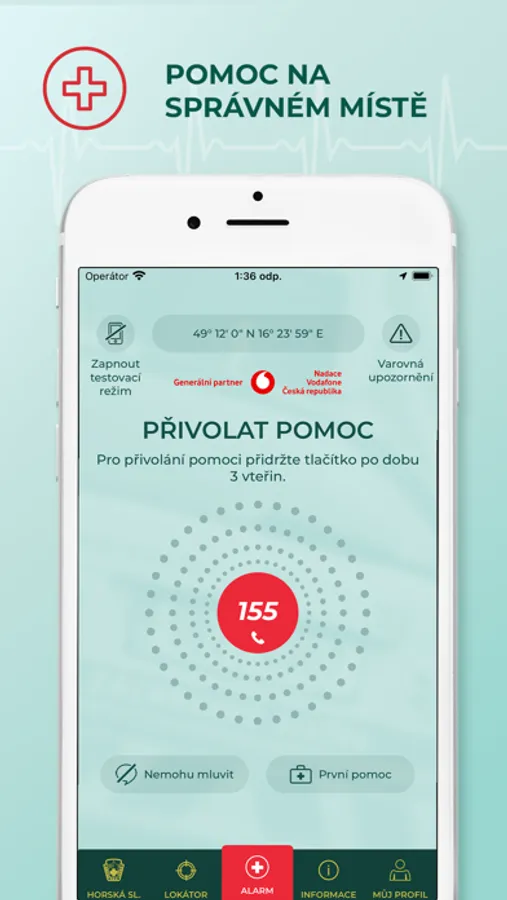 Při záchraně života jde o minuty. Pro rychlý příjezd záchranné služby, nebo přílet vrtulníku je důležitá přesná znalost místa zásahu. Jednoduchým přidržením nouzového tlačítka kontaktujete linku 155. Současně záchranářům odešlete Vaši přesnou polohu. Pomoc je na cestě...