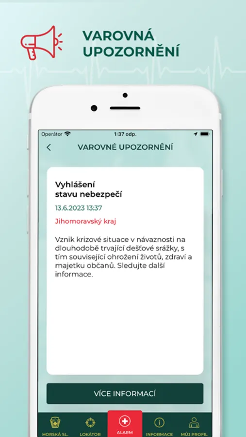 Mobilní aplikací ZÁCHRANKA v případě nouze jednoduchým způsobem kontaktujete Zdravotnickou záchrannou službu a Horskou službu. Zároveň záchranářům odešlete Vaši přesnou polohu a další užitečné informace, které slouží pro Vaši záchranu.