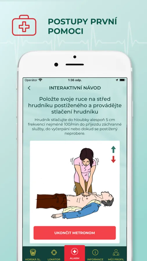 Giving first aid before the emergency services arrive greatly increases a person’s chances of survival. The Záchranka mobile app gives you help and support with its interactive guide, which takes you through the most important steps in a simple and intuitive way.