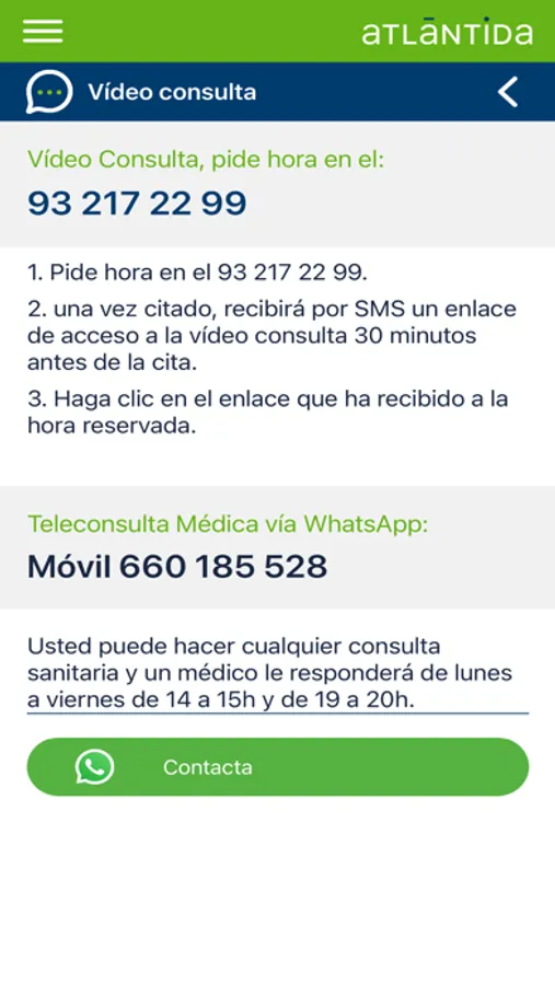 - Pedir un vídeo consulta por llamada o WhatsApp.