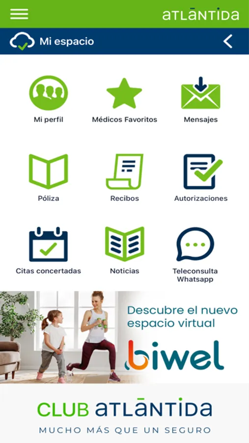 - Acceder al espacio Biwel con consejos de salud, recetas y salas de gimnasio virtual.
