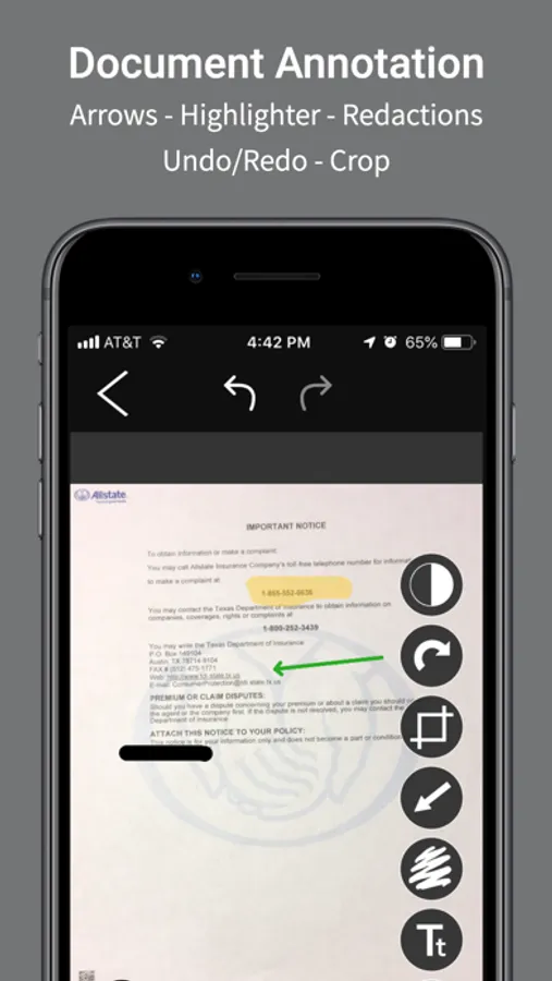-Annotate photos and documents with arrows, drawings, highlighters, and text labels.