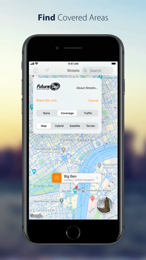Share Street View panoramas using drag-and-drop (on iPad) or the share sheet. Handoff and AirDrop let you easily transfer the currently viewed panorama between multiple devices. Mark panoramas as favorites that are automatically synced between devices. Rename favorites and organize them in folders.