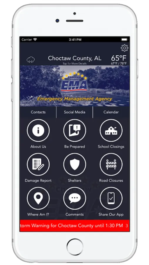 The Choctaw County EMA is proud to offer this free app to the citizens who live and work in and around Choctaw County, Alabama. This app is intended to provide you with everyday information about our office and the services we provide, as well as the ability to provide emergency notifications to your phone.