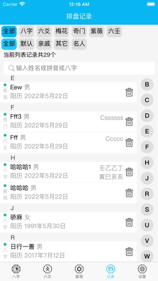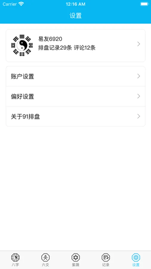 91排盘包含八字排盘、紫薇排盘、六爻排盘、梅花排盘、大六壬排盘、奇门排盘。91排盘以简单直观的排盘方式呈现给易学爱好者,可以分组、标注便于八字整理,注册用户自动开启排盘数据备份与同步功能,以便于术数爱好者之间的交流。