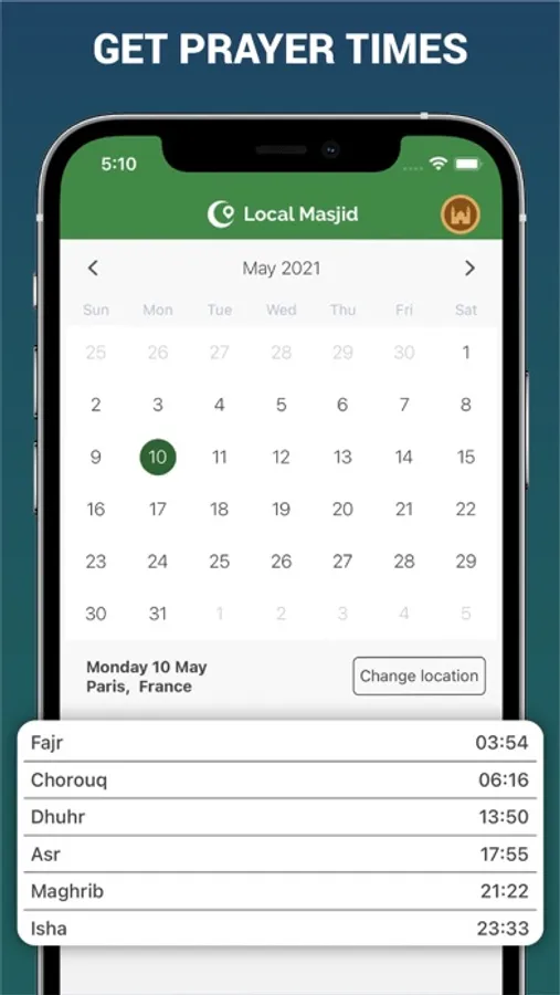 • Receive local prayers notifications.