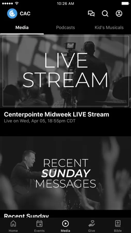 The Centerpointe Apostolic Church app was developed with the Subsplash App Platform.