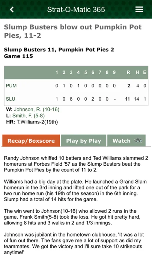 o Every morning, study the recap, boxscore and play-by-play of last night's games. Who's leading the league in homers? Which slugger has the highest batting average versus lefties? Which pitcher gets the most run support? Track over 60 stat categories throughout the season. Strat-O-Matic's attention to detail is unparalleled.