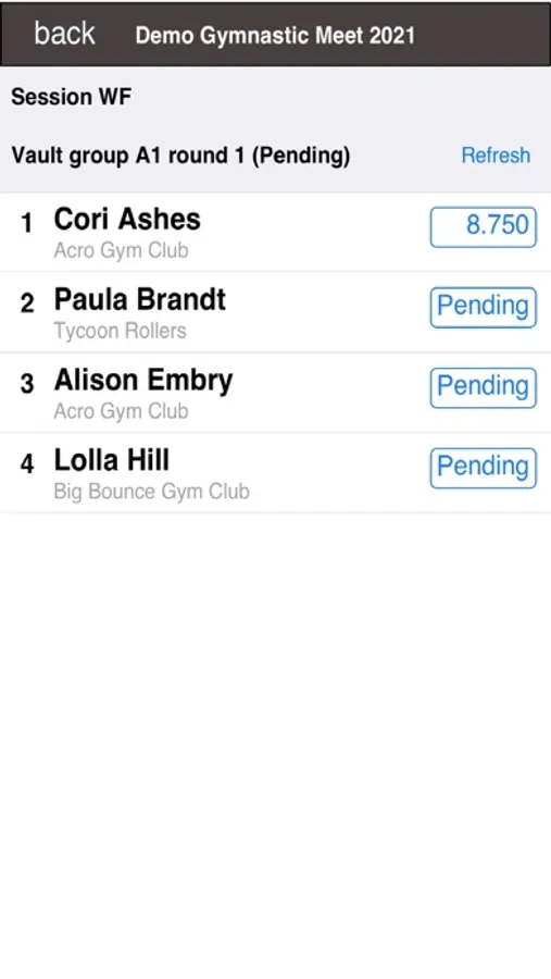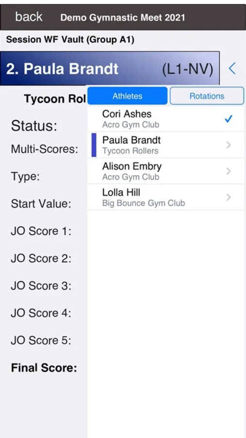 An APP for scoring of Gymnastics Meets being managed by the web-based SportzSoft LiveMeet software. Judges use this app at a SportzSoft LiveMeet to enter competition scores for each athlete.