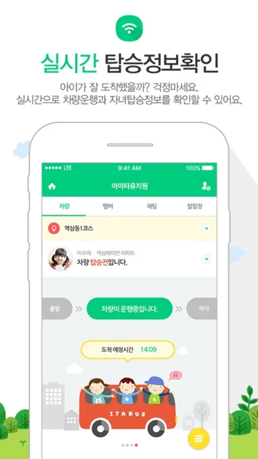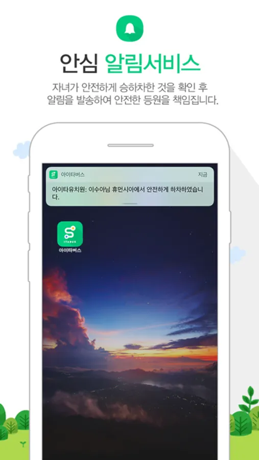 > 통학버스의 학원 출발할 때, 정류장 도착할 때 학부모에게 알려줍니다.