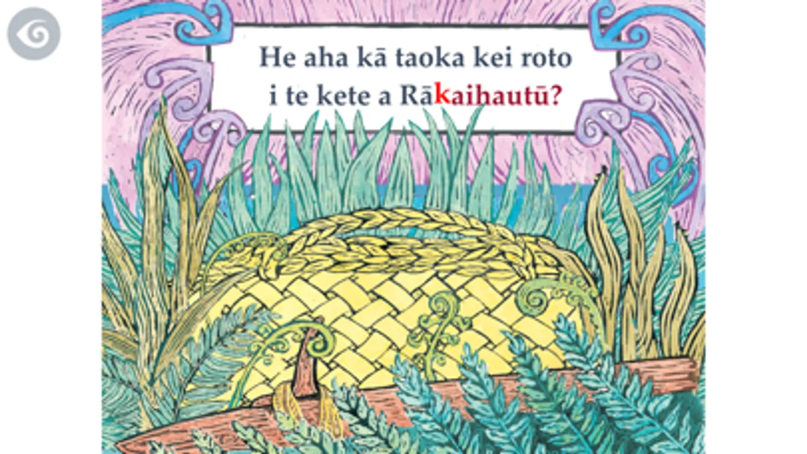 Rākaihautū the ancestor of the Waitaha people responsible for carving out the many lakes of Te Waipounamu (the South island) with his Kō (digging stick) is collecting treasures in his kete (basket). This counting story introduces the reader to some of the wildlife unique to Kāi Tahu people.