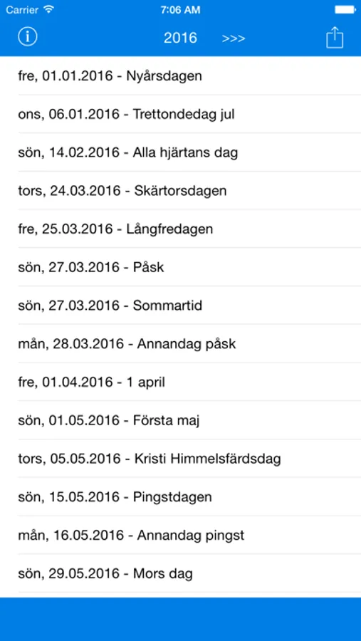 - Showing the holidays from Sweden