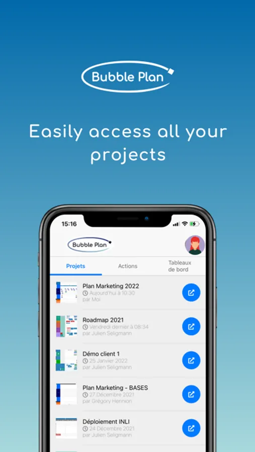 With Bubble Plan, piloting, organizing, modeling and sharing your projects will never be so easier and faster.