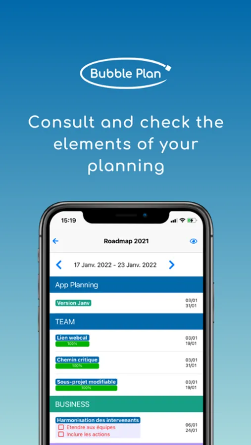 Whether in a collaborative mode or not, Bubble Plan supports you on all your project management issues. From project planning, to operational decision-making, to team management.