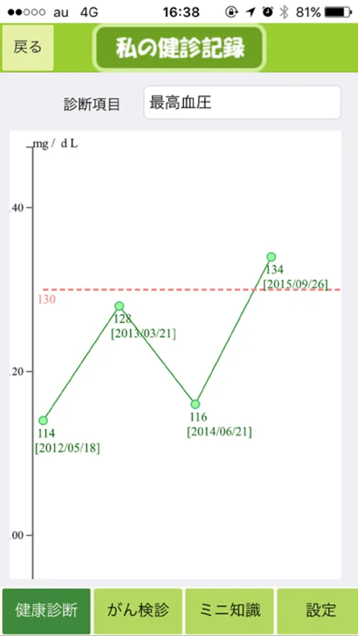 受診結果の推移を検査項目ごとにグラフ表示することができます。