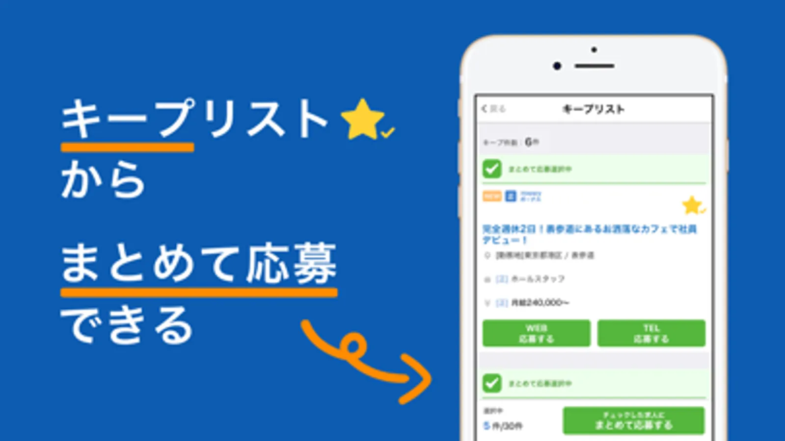 気になった仕事(求人)は「とりあえずキープ」をタップ