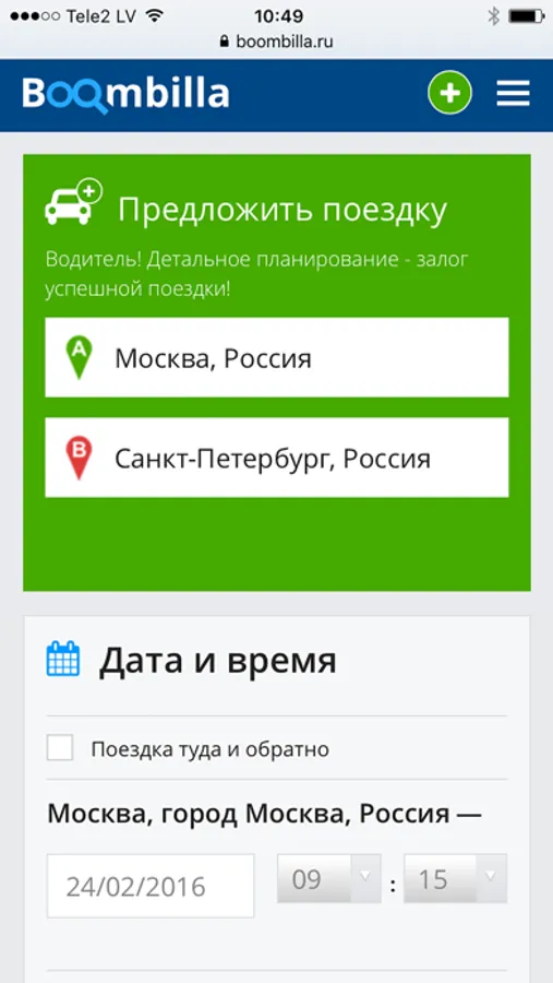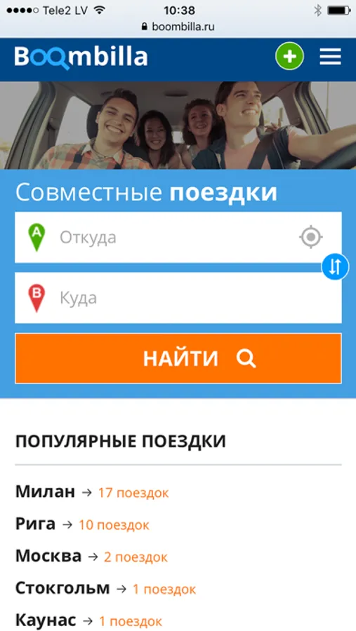 Boombilla объединяет водителей, располагающих свободными местами в личном автомобиле, и пассажиров, желающих найти эффективный и доступный способ путешествия не только в России, но и за рубежом.