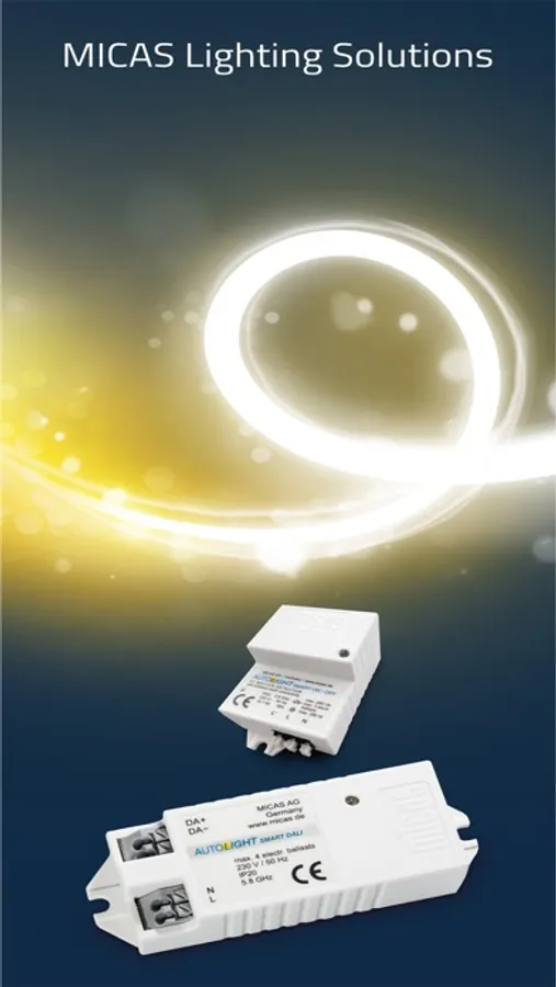 Configuration of the smart and compact MICAS HF motion detectors. Switching, dimming and commissioning of networks up to complex installations. Settings can easily be made by smartphone with this App. The communication to the mesh network is established via Bluetooth point to point connection.