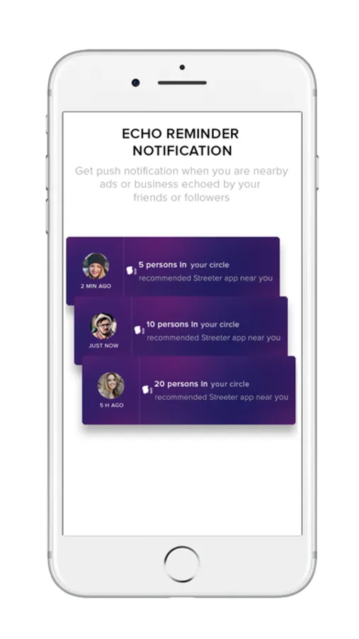 If you are near to the echoed location/place you will get push notification with the number of friends or followers in your circle that has recommended, it can be restaurants nearby, food nearby, jobs nearby, places to eat nearby and even movies, movie theater nearby.