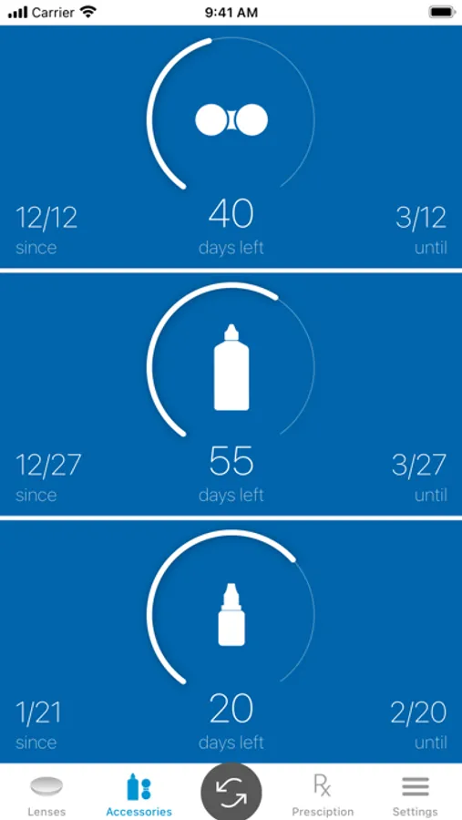 • Accessory tracking: Keep tabs on essential accessories like solution, case, and eye drops, ensuring they are timely replaced as well.