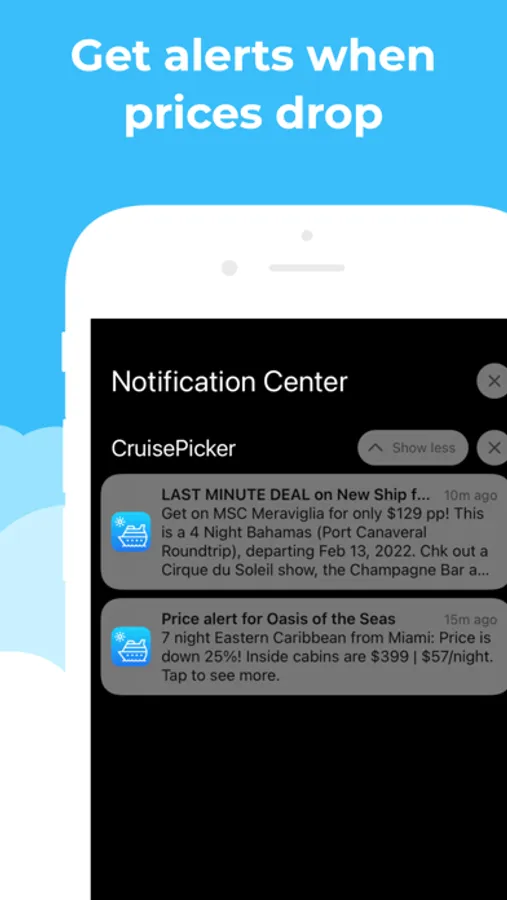 Don't overpay for your cruise. If you have your eye on a specific cruise, simply add a price alert to it and we'll send you a daily push notification with any price changes. Price alerts are free and there is no limit - set as many as you want!