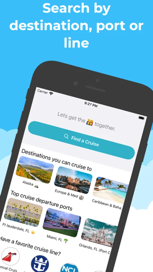 CruisePicker lets you easily search thousands of cruises by destination, departure port or cruise line and your desired travel dates. You can then sort and filter results by lowest price (or per night price), your favorite cruise line, port, type of cabin, or how long you want to cruise for.