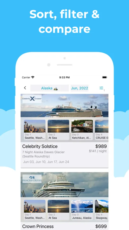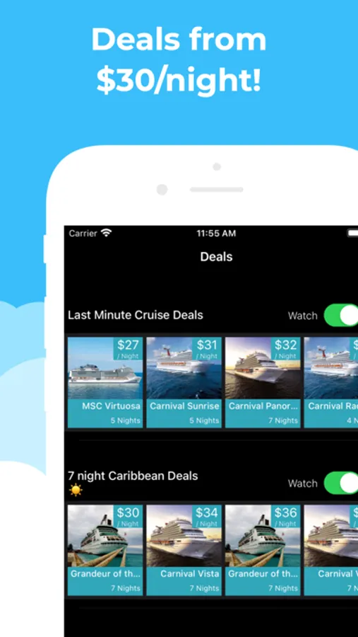 - Watchlist: Get price alert notifications when prices for a specific cruise price drops (or goes up)