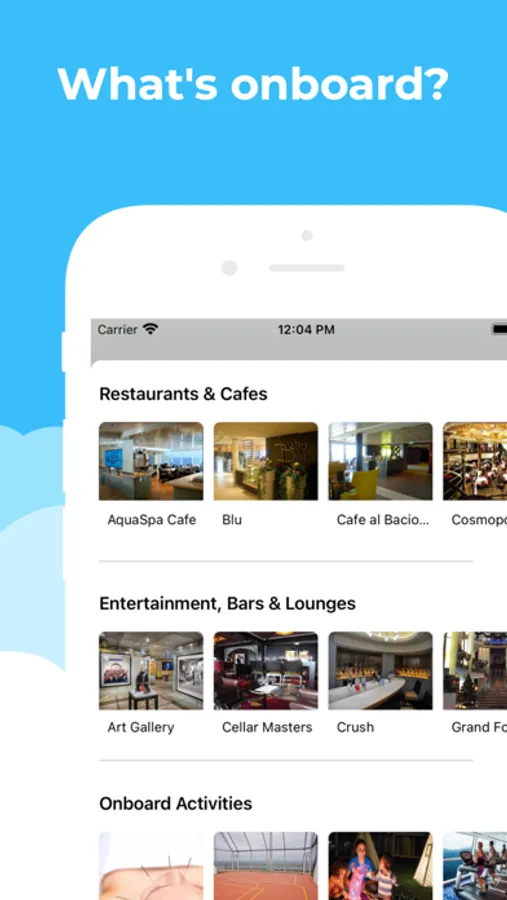 Many people want to learn about the ship - what's the food like? C'mon, we know food on a cruise is key! We list each restaurant and bar, entertainment venues and onboard activities. In addition, we describe each type of cabin (there are many). Where we can, we also list which venues are included (free) and which require an upcharge.