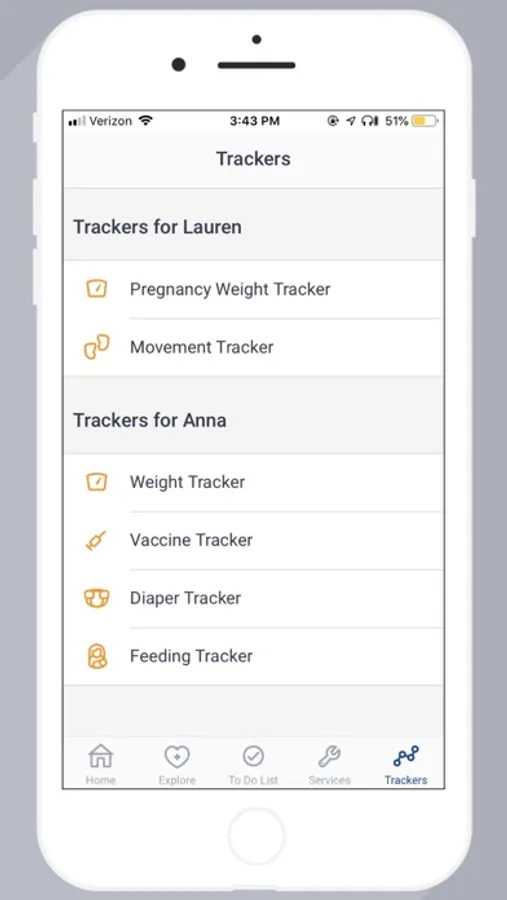 • Health-tracking tools for growth, feeding, diaper changes and vaccines.