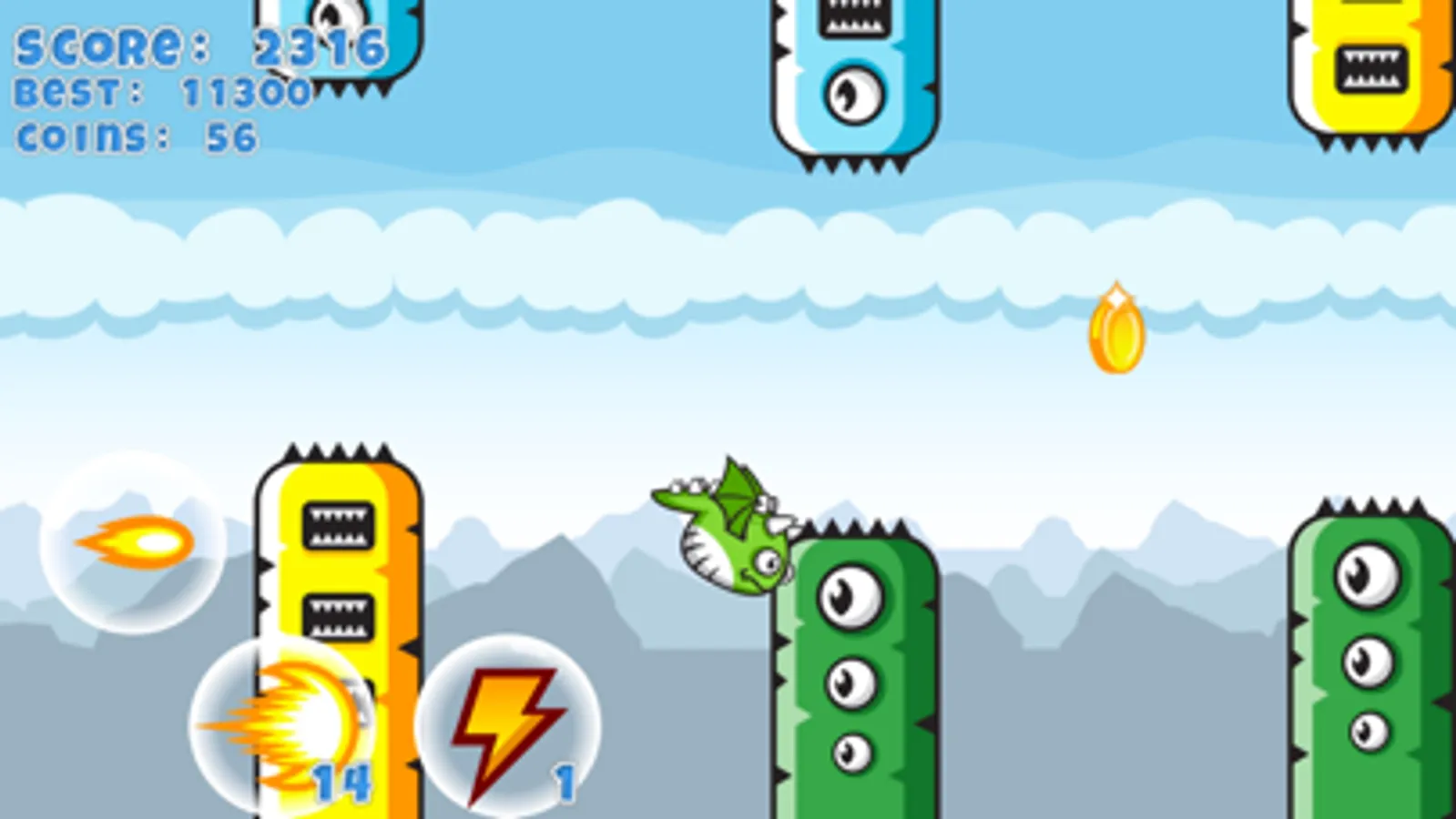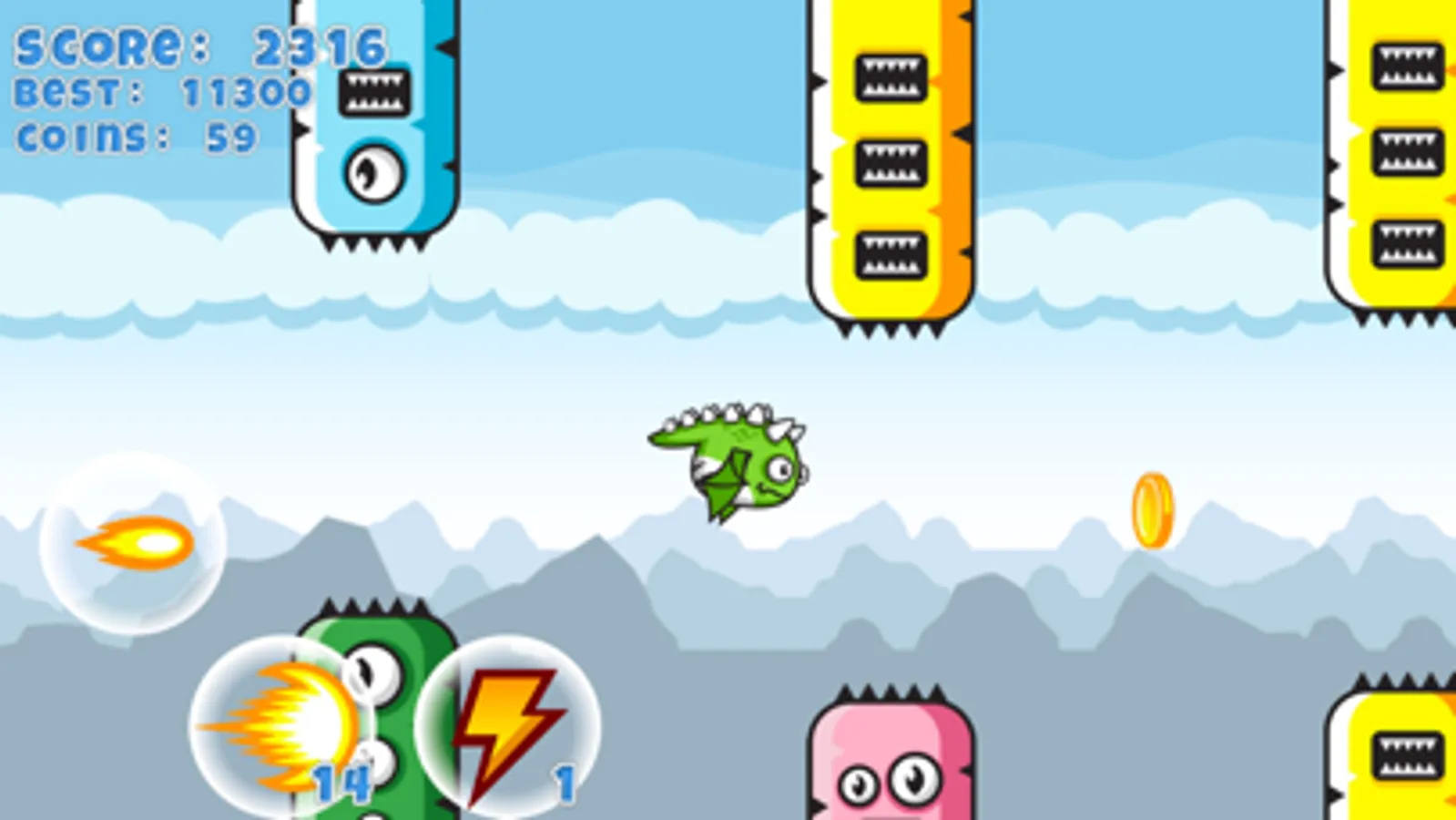 Tap the screen to fly higher and avoid obstacles. Remember: enemy birds can appear so be ready to shoot them down.