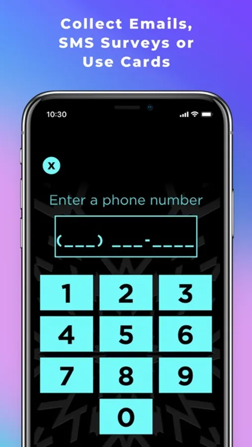 - The app prompts users to enter their email, mobile phone, or answer full custom surveys including such elements as an age gate and multiple opt-ins.