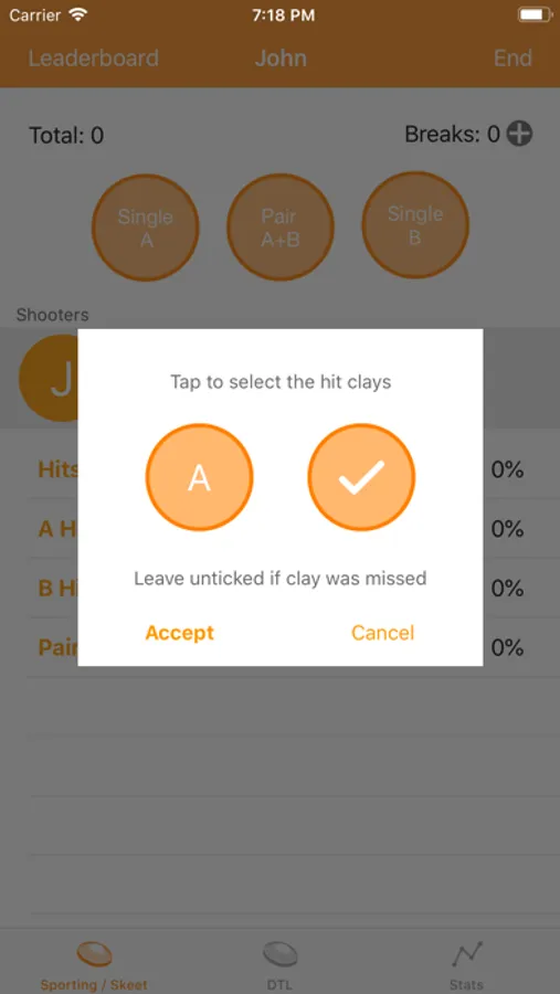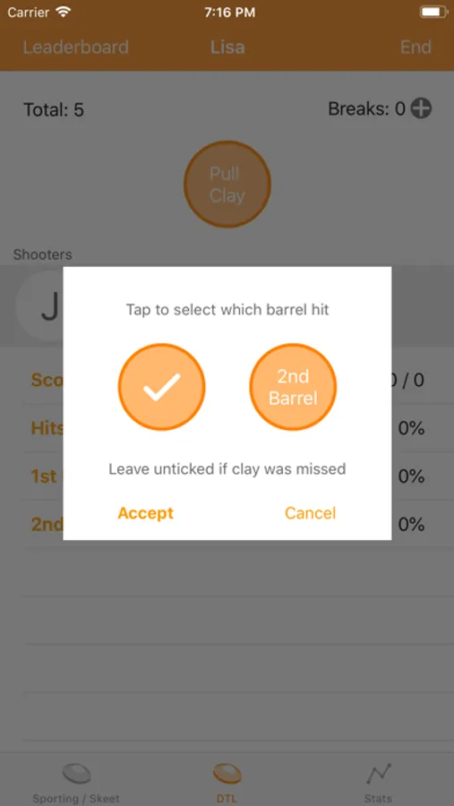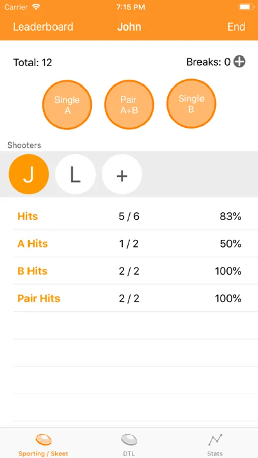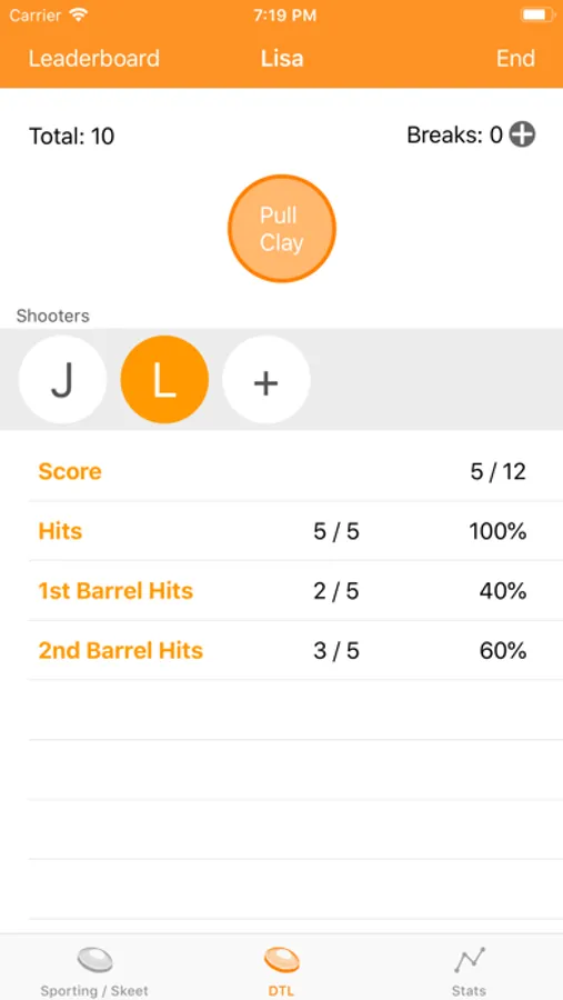 For Down The Line simply tap to pull a clay and tap to enter whether it was hit with first barrel, second barrel, or a miss. ClayPal will keep track of all the details including: