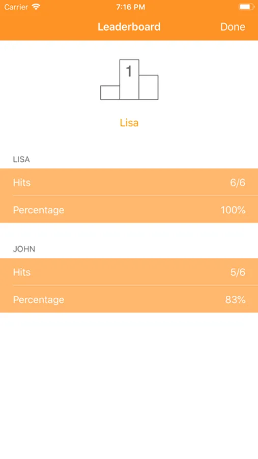 - Per shooter hit count, percentages, and Down The Line score (e.g. 300/100)