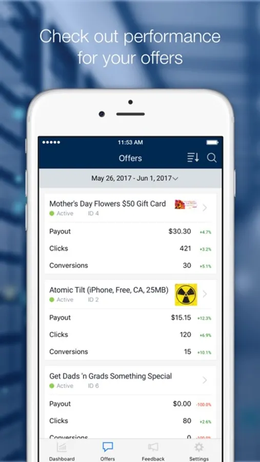 • View key stats for your network overall and individual offers