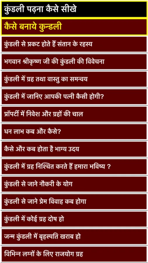Kundali application contain the hindi language .
