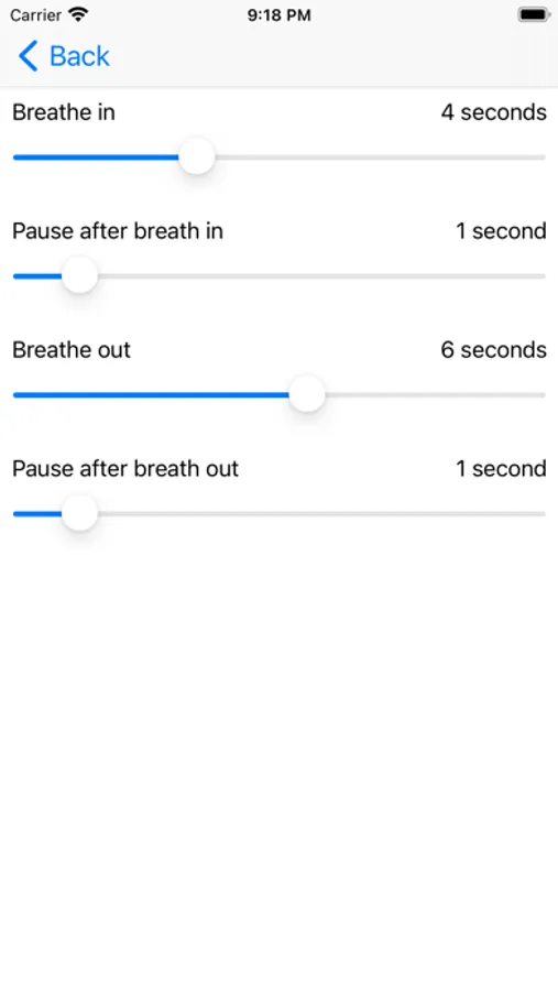 A visual cue for smooth, deep breathing. Breathe in as the bar rises and out as it falls. Adjust the rhythm as desired.