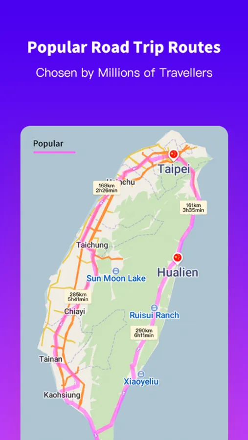 The most popular road trip routes are shown on the map.