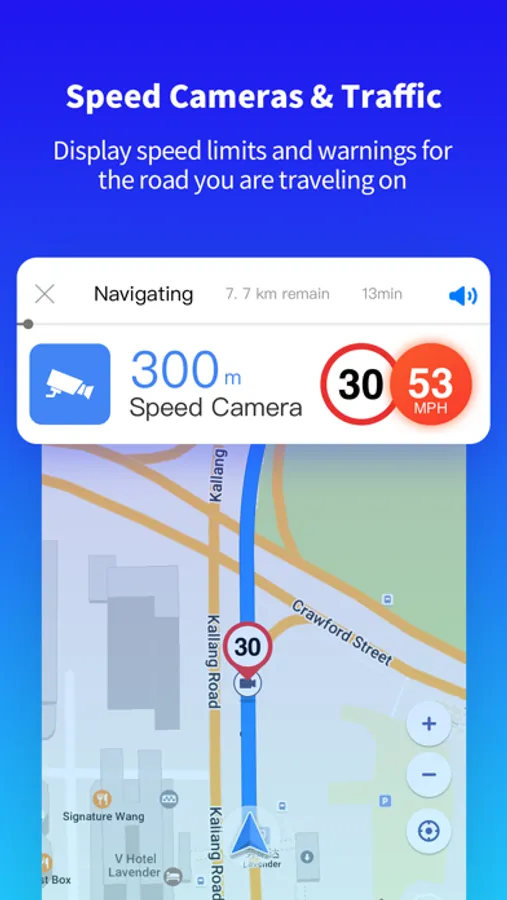 Speed-limit cameras and traffic-cameras warnings, avoid speeding tickets.